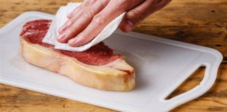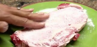 Βάζει την μπριζόλα στο πιάτο και την αλείφει με σόδα –...