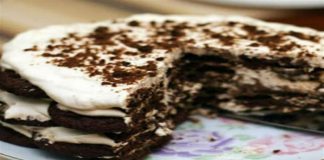 Γρήγορο γλυκό ψυγείου με cookies σοκολάτας και γάλα