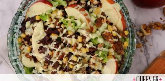 Δροσερή πράσινη σαλάτα με μήλο και ξηρούς καρπούς