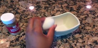 Βάζει σε ένα μπολ κανέλα και αυγά και απλώνει το μείγμα...