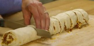 Γέμισε τη ζύμη με κιμά και την έκοψε σε ροδέλες –...