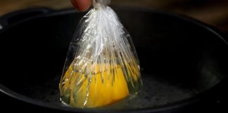 Τυλίγει ένα Αυγό με διάφανη μεμβράνη και το ρίχνει σε βραστό...