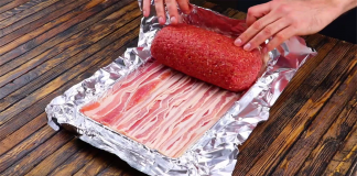 Άπλωσε 10 Φέτες Μπέικον στο Αλουμινόχαρτο και Τύλιξε τον Κιμά. Δείτε...