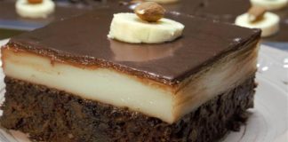 Νόστιμο γλυκό ψυγείου: Πάστα ταψιού με σοκολατένια μους και γλάσο μπανάνας