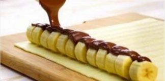 Κόβει μία Μπανάνα σε 12 κομματάκια και Ρίχνει από πάνω ζεστή...