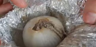 Γέμισε ένα κρεμμύδι με κιμά το τύλιξε με αλουμινόχαρτο και το...