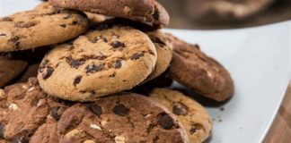 Αφράτα σοκολατένια μπισκότα με ξηρούς καρπούς και σταφίδες