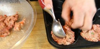 Γέμισε με κιμά και πουρέ πατάτας το ταψάκι για τα muffins...