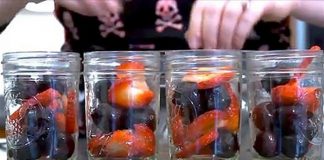 Βάζει σε βαζάκια φρούτα και τα τοποθετεί στον φούρνο – Κέικ...
