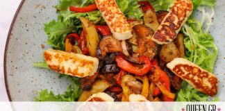 Λαχταριστή σαλάτα με χαλούμι και ψητά λαχανικά