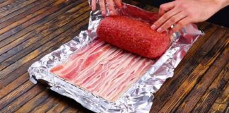 Απλώνει σε αλουμινόχαρτο 10 φέτες μπέικον και τυλίγει κιμά – Θα...