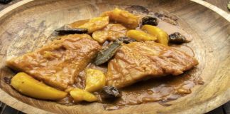 Αγιορείτικος μπακαλιάρος “λουκούμι” με πατάτες, κανέλα και δαμάσκηνα