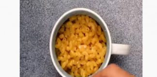 Βάζει σε μια κούπα μακαρόνια, γάλα και τυρί και τη βάζει...