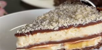 Μπανανένιο γλυκό ψυγείου με τυρί κρέμα, φυστίκια και μπισκότα έτοιμο σε...