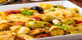 Μεσογειακή μακαρονοσαλάτα με ελιές και μουστάρδα