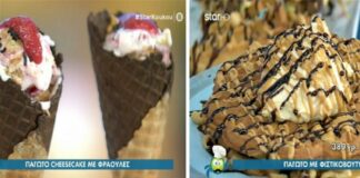 Παγωτό Cheesecake με φράουλες και παγωτό με φιστικοβούτυρο