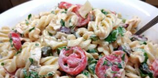 Δροσερή συνταγή για καλοκαιρινή μακαρονοσαλάτα με κοτόπουλο και απολαυστική σως γιαουρτιού