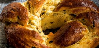 Γεμιστό τσουρέκι πορτοκάλι με αυγά από την Αργυρώ Μπαρμπαρίγου