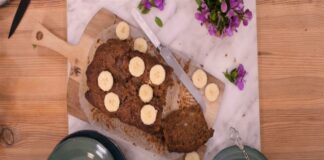 Vegan κέικ μπανάνας με μαρμελάδα μήλου