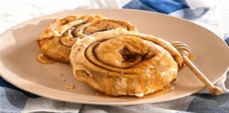 Στριφτή σκοπελίτικη τυρόπιτα στο τηγάνι, περιχυμένη με μέλι από την Αργυρώ