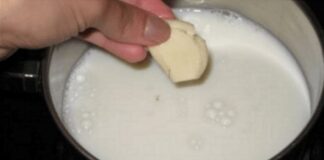 Ζεσταίνει λίγο γάλα σε μια κατσαρόλα και πετάει μέσα μια σκελίδα...