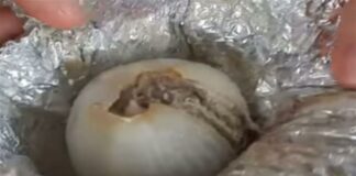 Γέμισε ένα κρεμμύδι με κιμά το τύλιξε με αλουμινόχαρτο και το...