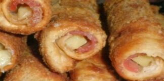 Tραγανά ρολά με ψωμί του τόστ ζαμπόν και τυρί