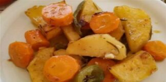 Μελωμένες πατάτες με καρότα στο φούρνο