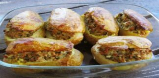 Γεμιστές πατάτες με κιμά και σάλτσα μανιταριών