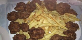 Συνταγή για χοιρινά μπριζολάκια με γλάσο καφέ και πατατοσαλάτα με τηγανητά...