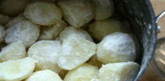 Κόβει σε κύβους τις πατάτες, τις αλευρώνει και προσθέτει σκόρδο και...