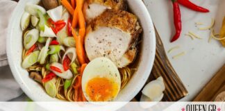 Σούπα ράμεν με κοτόπουλο, μανιτάρια και νουντλς
