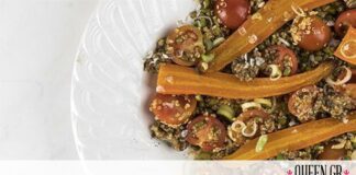 Σαλάτα με ψητά καρότα, ροβίτσα, κινόα και ντοματίνια