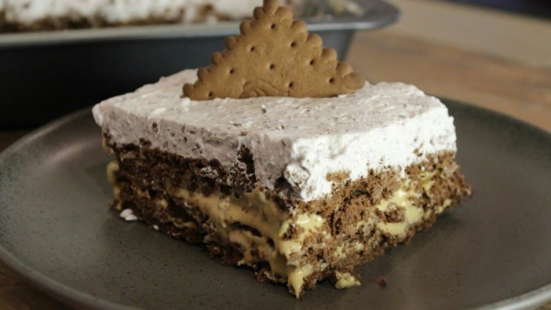 Πεντανόστιμο γλυκό ψυγείου με ζαχαρούχο γάλα και μπισκότα μέσα σε 10...