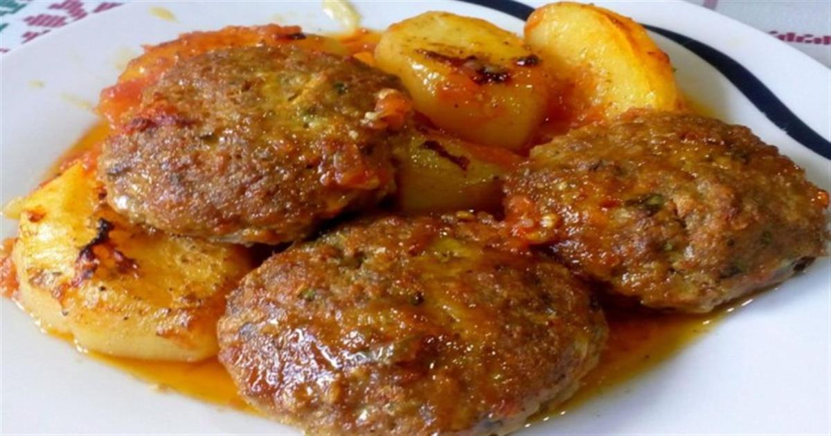 Πανδαισία γεύσεων: Αφράτα μπιφτέκια στο φούρνο με πατάτες και κόκκινες πιπεριές