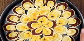 Κόβει σε 33 κύκλους ένα φύλλο κρούστας και το γεμίζει με...