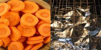 Έκοψε τα καρότα σε ροδέλες και τα έβαλε πάνω σε αλουμινόχαρτο...