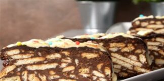 Μπισκοτογλυκό ψυγείου με σοκολάτα, δημητριακά και κονιάκ έτοιμο σε 15′