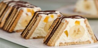 Του ονείρου: Λαχταριστό γλυκό ψυγείου με μπανάνες, κρέμα και μπισκότο έτοιμο...