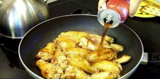 Βάζει τα κομμάτια κοτόπουλου στο τηγάνι και προσθέτει Κόκα Κόλα –...