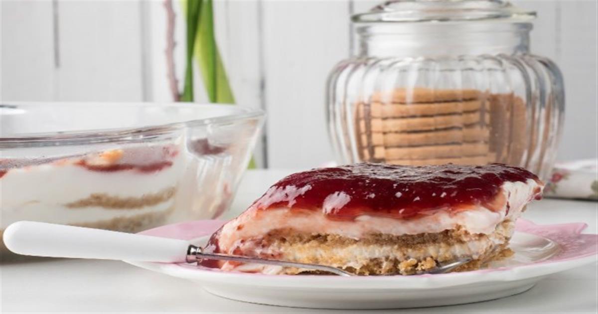 Κολασμένο γλυκό ψυγείου με μπισκότα βουτύρου έτοιμο σε 15′