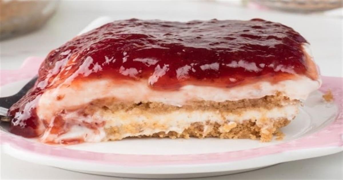 Το πιο δροσερό και λαχταριστό γλυκό ψυγείου με μαρμελάδα φράουλα