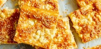Λαχταριστή τυρόπιτα χωρίς φύλλο, με σουσάμι και μοσχοκάρυδο