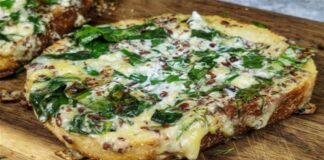 Γρήγορη πίτσα με ψωμί του τοστ, αυγά και κρέμα γάλακτος