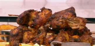 Κοντοσούβλι στο φούρνο με πατάτες τηγανητές και πικάντικη σως! (Video)