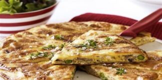 Ομελέτα φούρνου με φρέσκο αρακά και σαλάμι μπίρας