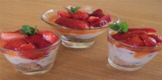 Δροσερό γλυκό στο ποτήρι με μπισκότο, φράουλες και κρέμα γιαουρτιού