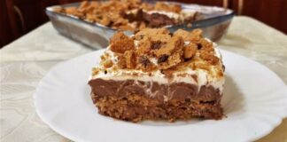 Μαμαδίστικο γλυκό ψυγείου με ζελέ, κρέμα και μπισκότα (Video)