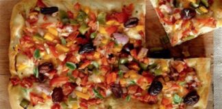 Νηστίσιμη παραδοσιακή σπιτική πίτσα με πιπεριές και ελιές