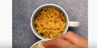 Βάζει σε μια κούπα μακαρόνια, γάλα και τυρί και τη βάζει...